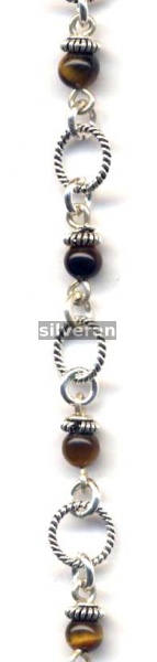 Sterling Silver Bead Cap, 4mm Semi Precious Tiger Eye Stone and 0.70mm Sterling Silver Wire with Silver Link Bead #181033