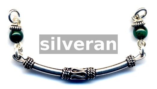 Sterling Silver Bead Cap, 4mm Malachite Stone