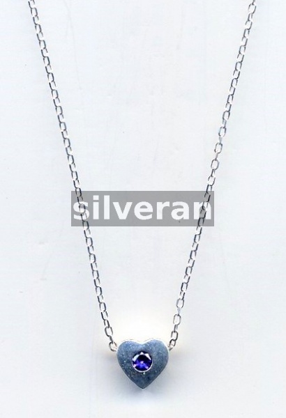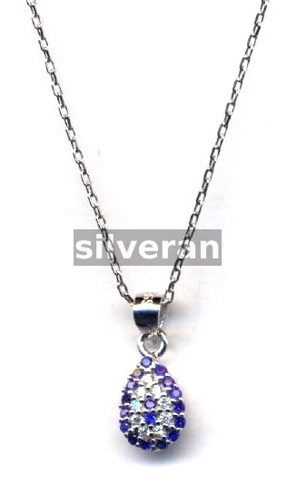 Sterling Silver Handcrafted Necklace with Aqua Marine Cubic Zirconia
