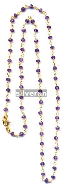 Gold Vermeil over Sterling Silver Handcrafted Fancy Chain With Stone Sterling Silver Wire and 3mm Amethyst Stone