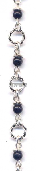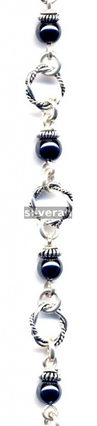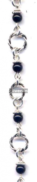 Sterling Silver Bead Cap, 4mm Onyx Stone and 0.70mm Sterling Silver Wire with Silver Link Bead #181033