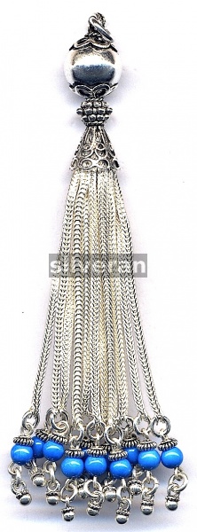 Sterling Silver Handcrafted in Turkey - Tassel with Blue Agate Stone