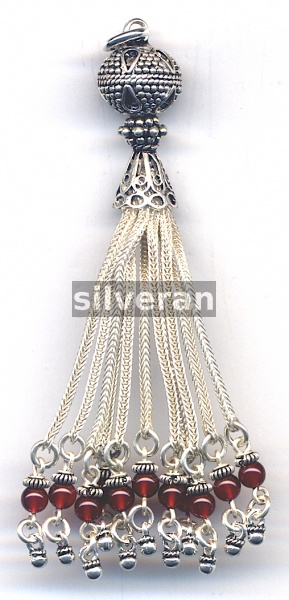 Sterling Silver Handmade in Turkey - Tassel with Garnet Stone