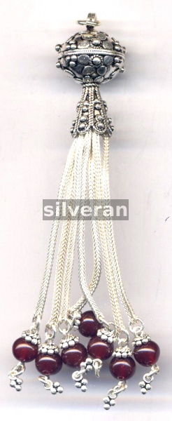 Sterling Silver Handmade in Turkey - Tassel with Garnet Stone