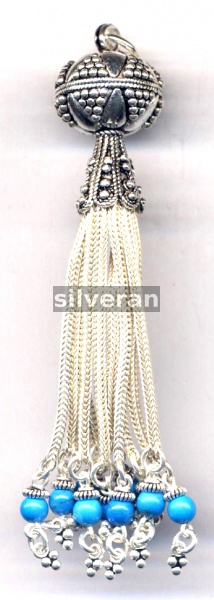 Sterling Silver Handmade in Turkey - Tassel with Turquoise Stone
