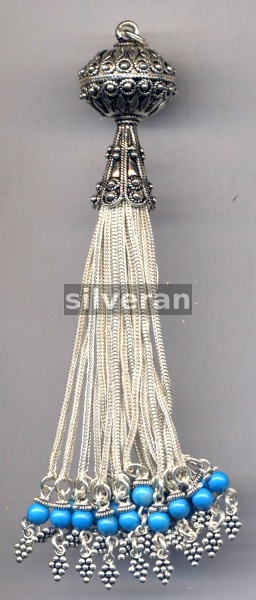 Sterling Silver Handcrafted in Turkey - Tassel with Blue Agate Stone