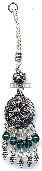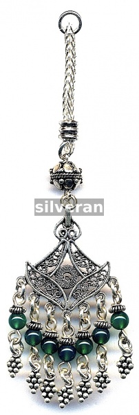 Sterling Silver Handcrafted in Turkey - Tassel with Green Agate Stone