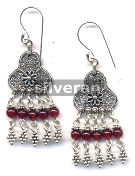 Sterling Silver, Chandelier Earring with Garnet Stone