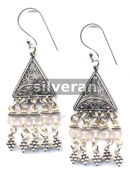 Sterling Silver, Chandelier Earring with Rose Quartz Stone
