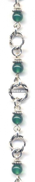 Sterling Silver Bead Cap, 4mm Semi Precious Green Agate Stone and 0.70mm Sterling Silver Wire with Silver Link Bead #181033