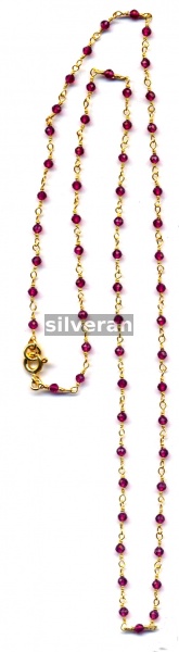 Gold Vermeil over Sterling Silver Handcrafted Fancy Chain With Stone Sterling Silver Wire and 2mm Ruby Hidro Stone
