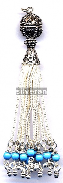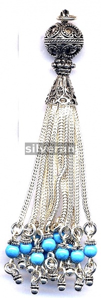 Sterling Silver Handmade in Turkey - Tassel with Turquoise Stone