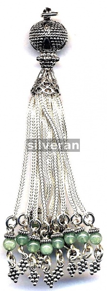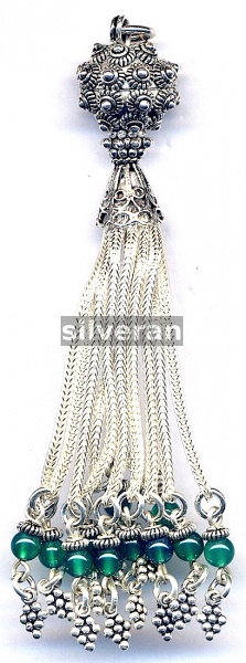 Sterling Silver Handmade in Turkey - Tassel with Green Agate Stone