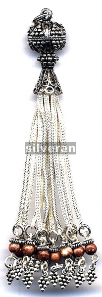 Sterling Silver Handcrafted in Turkey - Tassel with Agate Stone - 11 Strands