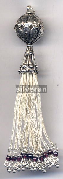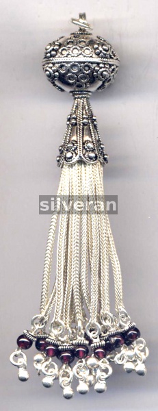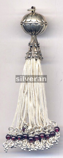 Sterling Silver Handmade in Turkey - Tassel with Garnet Stone
